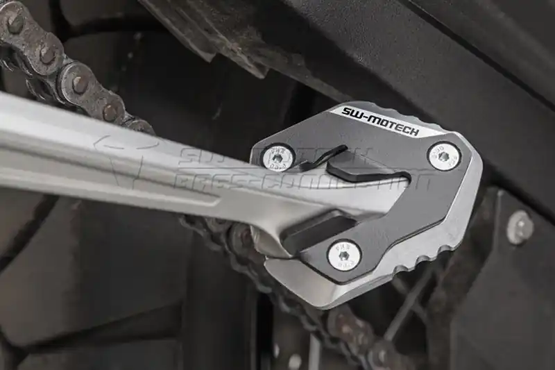 Met je Triumph Tiger 800 (controleer in de motorlijst het bouwjaar van de Tiger 800 en eventuele model-info) in het allroad segment heb je soms er ook mee te maken dat je in het ruwe terrein je motor even moet neerzetten. De voetoppervlakte van de originele zijstandaard van je motor is aan kleine kant, waardoor deze kan wegzakken. Met deze zijstandaard voet van SW-Motech krijg je een groter oppervlakte van de voet en zal daardoor je motor steviger staan. Er zijn voor de montage van deze zijstandaard voet op je Triumph Tiger 800 geen extra aanpassingen nodig.