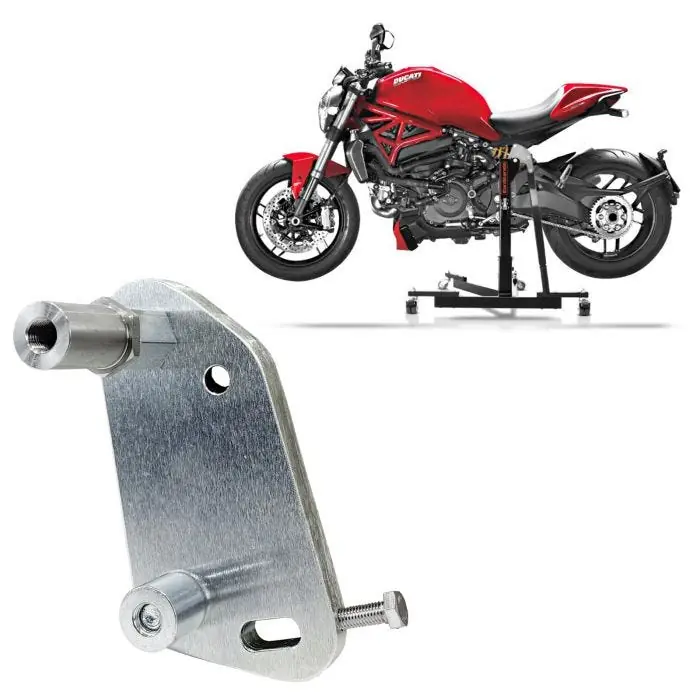• Belangrijk: Een complete set met middenstandaard en adapterplaat voor de betreffende motorfiets is verkrijgbaarhier