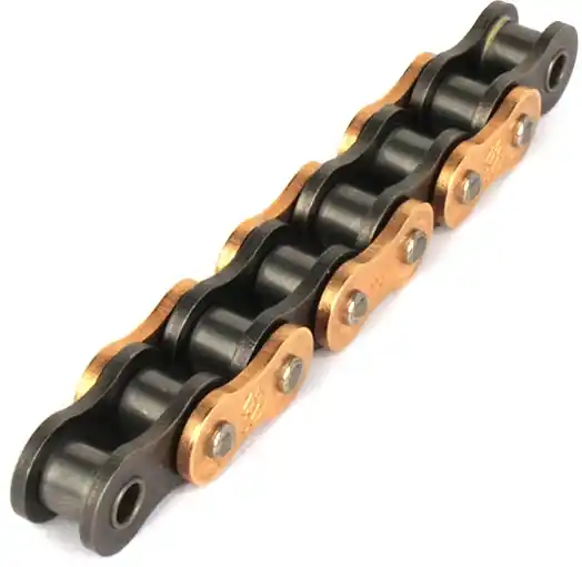 Met zijn sterke constructie en betrouwbare clip-systeem, zorgt deze ketting ervoor dat je motor soepel en efficiënt blijft rijden. De gouden afwerking geeft niet alleen een stijlvolle uitstraling aan je motor, maar zorgt ook voor extra bescherming tegen corrosie.