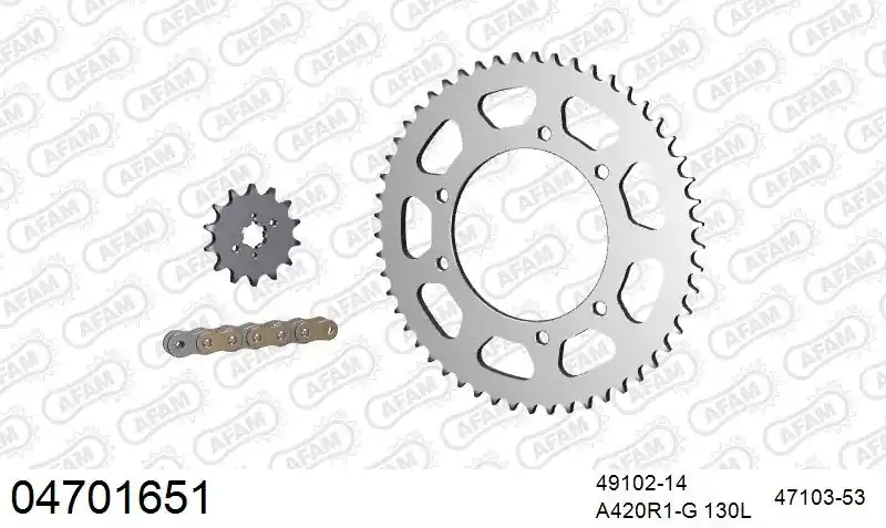 De AFAM 420R1 130 AR (CLIP) GOLD & SPROCKETS is een hoogwaardige kettingkit, speciaal ontworpen voor motoren en scooters. Deze kit is gemaakt van sterk staal, wat zorgt voor een lange levensduur en uitstekende prestaties. Met een opvallende gouden kleur geeft deze kettingkit je voertuig een sportieve uitstraling.