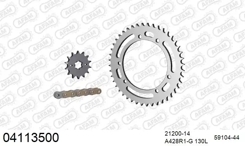 De AFAM 428R1 130 AR (CLIP) GOLD & SPROCKETS is een hoogwaardige kettingkit die speciaal ontworpen is voor motoren en scooters. Dit product valt onder de categorie Chain Kits en is vervaardigd uit stevig staal, waardoor het een betrouwbare keuze is voor jouw voertuig.