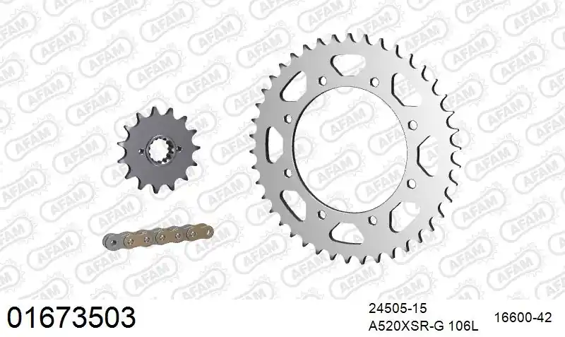 De AFAM 520XMR3 106 MRS is een hoogwaardige kettingset die speciaal is ontworpen voor verschillende modellen van de Kawasaki KLR 650. Deze set bestaat uit een ketting met rivet en tandwielen, wat zorgt voor optimale prestaties en duurzaamheid. Met de juiste onderdelen verbeter je de rijervaring van je motor.