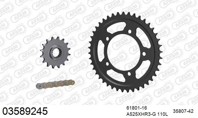 De AFAM 525XHR3 110 MRS is een hoogwaardige chain kit die speciaal ontworpen is voor motoren en scooters. Deze kit bevat een gouden ketting met de specificatie 525XHR3 en is uitgerust met sprockets voor optimale prestaties. Het gebruik van staal in deze ketting zorgt voor een uitstekende duurzaamheid en betrouwbaarheid, wat essentieel is voor elke motorrijder.