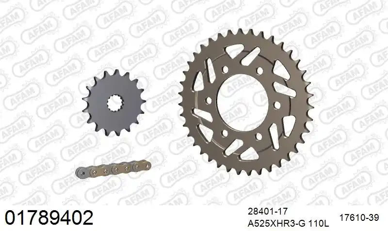 De AFAM 525XHR3 110 MRS is een hoogwaardige chain kit die speciaal ontworpen is om een uitstekende prestaties en duurzaamheid te bieden. Deze kit is uitgerust met gouden rivetten die niet alleen esthetisch aantrekkelijk zijn, maar ook zorgen voor een sterke en betrouwbare verbinding.