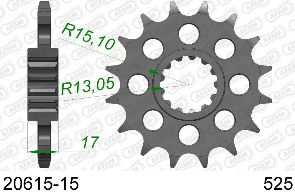 Waar is de AFAM FRONT 15T, 525 sprocket van gemaakt?
