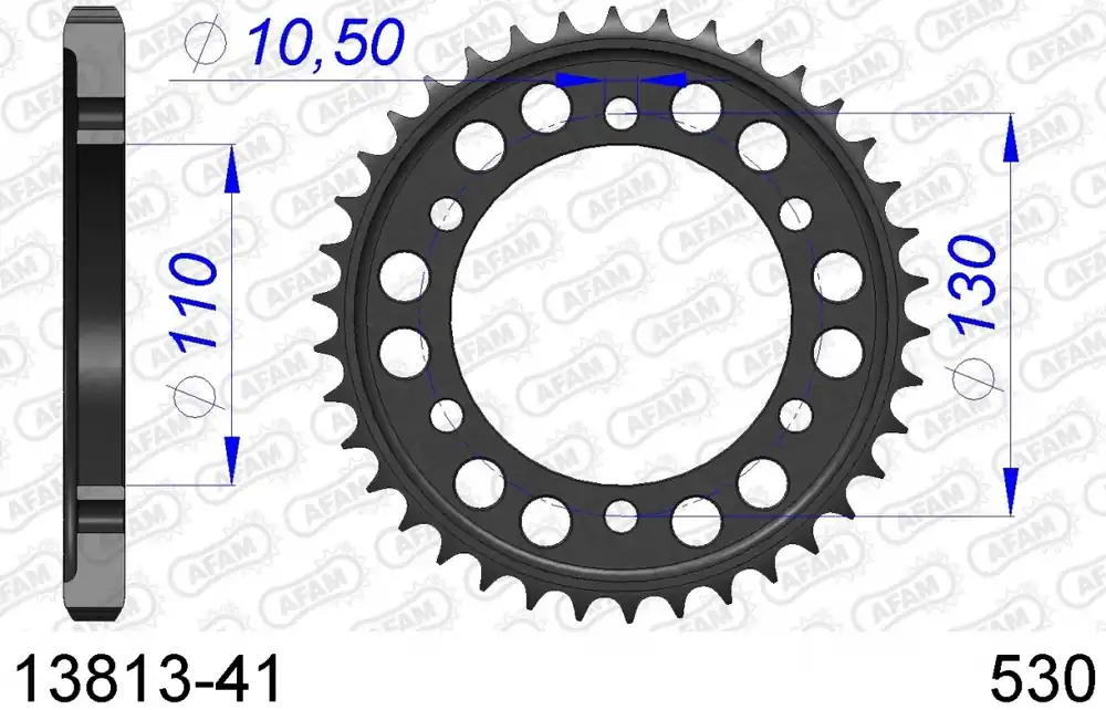 De AFAM REAR ALU 41T, 530 is een hoogwaardige sprocket die speciaal ontworpen is voor optimale prestaties. Deze sprocket, gemaakt van lichtgewicht aluminium, biedt niet alleen een uitstekende gewichtsbesparing maar ook een hoge duurzaamheid. Met een tandconfiguratie van 41T en een kettingmaat van 530, is deze sprocket perfect voor verschillende toepassingen.