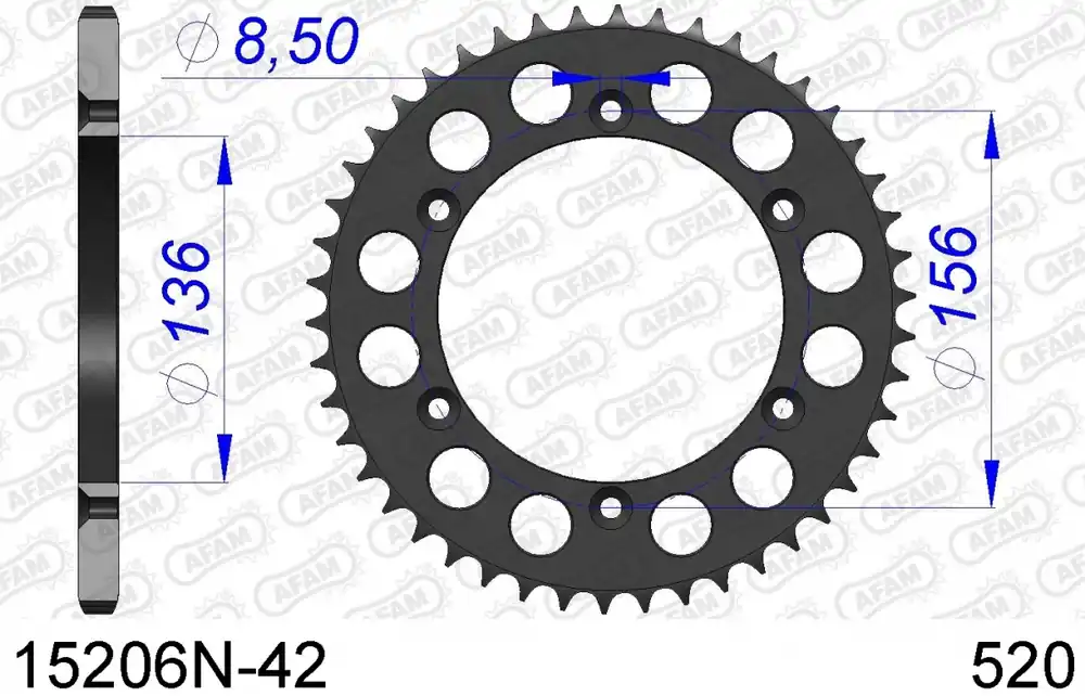 De AFAM REAR ALU 42T, 520 is een hoogwaardige sprocket die speciaal ontworpen is om de prestaties van je motor te verbeteren. Dit onderdeel is perfect voor iedereen die op zoek is naar een betrouwbare en efficiënte oplossing voor hun motor. Met een tanden aantal van 42 en een kettingmaat van 520 biedt deze sprocket de ideale combinatie van kracht en snelheid.
