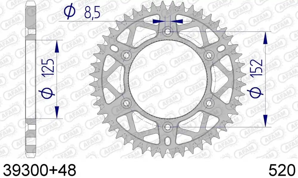 AFAM – REAR ALU 48T, 520, SELF CLEANING – Sprockets – Zelfreinigend Gratis Retour