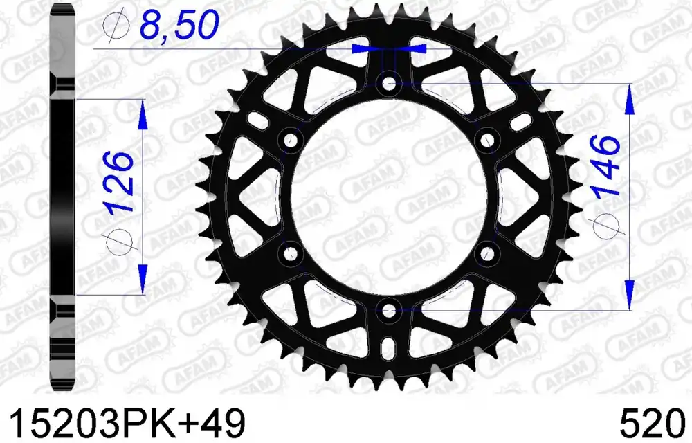 Met de AFAM REAR ALU 49T, 520, BLACK profiteer je van een verbeterde acceleratie en een soepelere rit. De aluminium constructie zorgt ervoor dat je minder gewicht meesleept zonder in te boeten op de stevigheid. Dit is vooral belangrijk voor off-road rijden, waar elke gram telt.