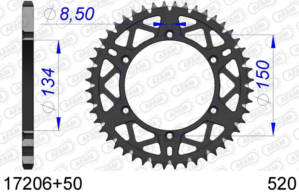 AFAM – REAR ALU 50T, 520, SELF CLEANING – Sprockets – Zelfreinigend Beperkte Voorraad