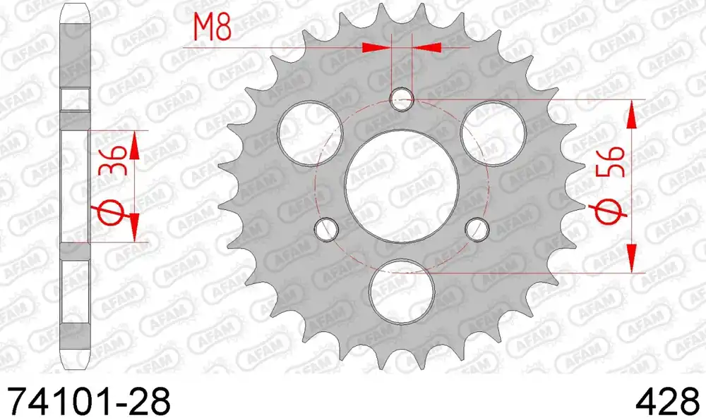 Is de AFAM REAR STEEL 28T, 428 geschikt voor mijn motor?