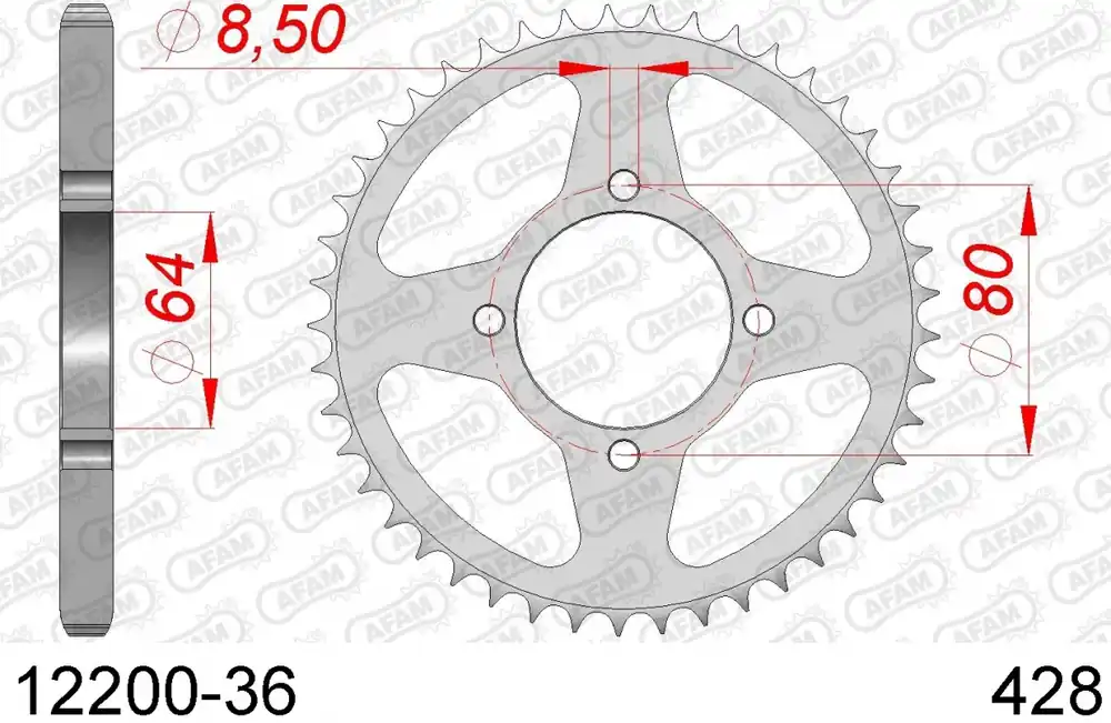 AFAM staat bekend om zijn kwaliteit en betrouwbaarheid. Door te kiezen voor AFAM investeer je in een product dat je motor of scooter naar een hoger niveau tilt. De REAR STEEL 36T, 428 is daar een perfect voorbeeld van.