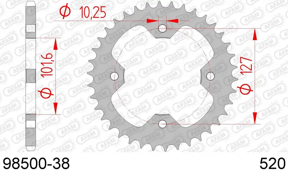 AFAM – REAR STEEL 38T, 520 – Sprockets – Achterste staal Nieuw