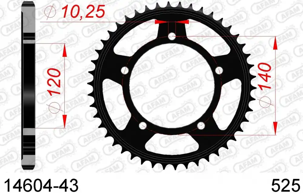 Hoe weet ik of de AFAM REAR STEEL 43T, 525 geschikt is voor mijn motor?