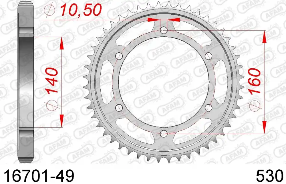 AFAM – REAR STEEL 49T, 530 – Sprockets – Staal Finale Uitverkoop