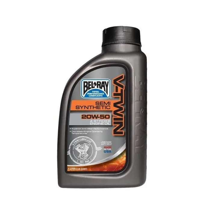 V-Twin Semi-Synthetic Engine Oil 20W-50 is een multigrade 4-takt olie geschikt voor zowel lucht- als water gekoelde motoren. Overtreft de eisen die aan een V-Twin motorolie worden gesteld en heeft GEEN invloed op garanties. Reduceert lager- en kleppenmechanisme slijtage en minimaliseert wrijving voor een verhoogd vermogen en lagere bedrijfstemperaturen. Wordt geleverd in een flacon met handige schenkdop van 1 liter.