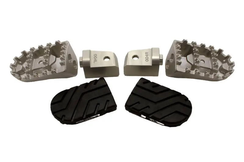 Voetsteunen van SW-Motech voor de Triumph Tiger 800 (controleer in de motorlijst het bouwjaar van de Tiger 800 en eventuele model-info). Deze voetsteunen zijn zeer stevig voor het ruigere werk. Het metalen deel is van RVS en het rubber bovenzijde is ontwikkeld om een stevige ondersteuning te hebben voor de voet. De hoogte is in 2 standen verstelbaar, namelijk de originele hoogte en 15mm lager. De voetsteunen van SW-Motech zijn uitstekend geschikt voor Off-Road, All-road en tourgebruik.