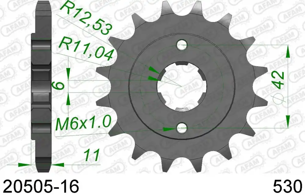 De AFAM FRONT 16T, 530 is compatibel met de Honda CB 650 C A, Honda CB 650 Z, Honda CBX 550 F C en Honda CBX 550 F II C.