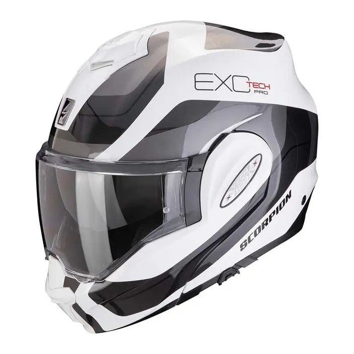 Met de Scorpion EXO-Tech slaat Scorpion een hele nieuwe weg in. Een systeemhelm waarbij het kinstuk volledig naar achteren kan. De helm krijgt daardoor een stoer uiterlijk, die voornamelijk bij de naked bike rijders in de smaak zal vallen, maar blijft wel praktisch. Wanneer het kinstuk naar achteren geplaatst is valt die volledig weg en vangt daarbij geen wind. Het vizier blijft dan wel op zijn plaats om de ogen te beschermen tegen wind en andere dingen. De helm heeft dan ook een dubbele homologatie. Dit houdt in dat die zowel als integraal helm en als jethelm gekeurd is. De helm komt in twee shel maten om de perfecte pasvorm te bieden zonder onnodig gewicht te dragen.