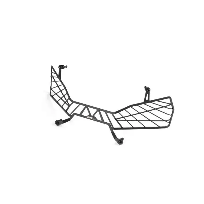 De headlight guard voor de CFMOTO 800MT-X is een onmisbare accessoire voor wie zijn brommer optimaal wil beschermen en tegelijkertijd een stoere uitstraling wil geven. Tijdens het rijden krijgt de koplamp veel te verduren: steenslag, vuil en weersinvloeden kunnen krassen of zelfs schade veroorzaken. Deze guard is speciaal ontworpen voor de 800MT-X en sluit daardoor perfect aan op het ontwerp van de brommer. Het stevige materiaal is licht van gewicht maar biedt maximale bescherming, zodat je koplamp in topconditie blijft. Bovendien geeft de guard je motor een avontuurlijke en robuuste look, passend bij het karakter van de CFMOTO 800MT-X.