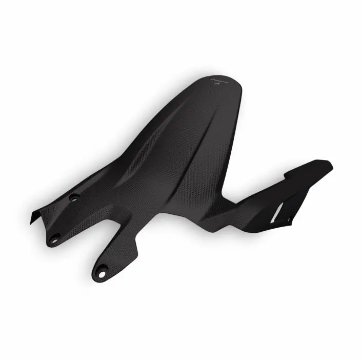 Een accessoire met een strak maar opvallend ontwerp dat perfect past bij de lijn van de motorfiets. Lichtgewicht en sterk, versterkt door de onmiskenbare afwerking van carbon, die een extra agressief detail aan de achterkant geeft.