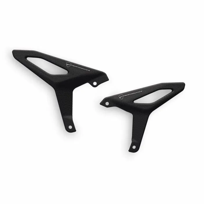 Ze zijn gemonteerd op OEM-voetsteunen en zijn ontworpen om de interferentie tussen de motorfiets en de laarzen van de berijder te minimaliseren. Het hoogwaardige materiaal van carbonvezel biedt maximale lichtheid en bescherming en geeft die karakteristieke Ducati-race-uitstraling.