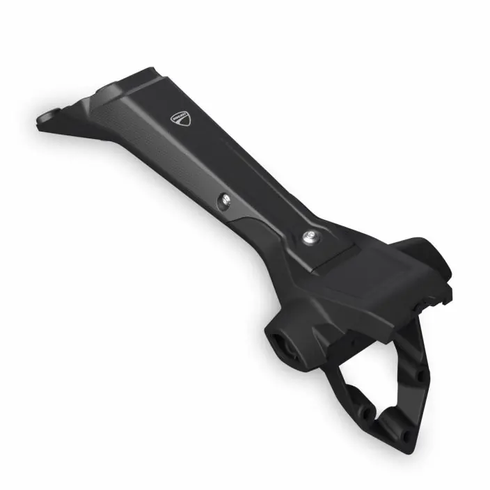Een uitgesproken sportief ontwerp voor dit element van carbonvezel dat de achterkant van de motorfiets een agressieve uitstraling geeft. Het materiaal in racestijl wordt gecombineerd met een kunststof onderdeel dat voldoet aan de typegoedkeuringsspecificaties voor gebruik op de weg. Praktisch en q