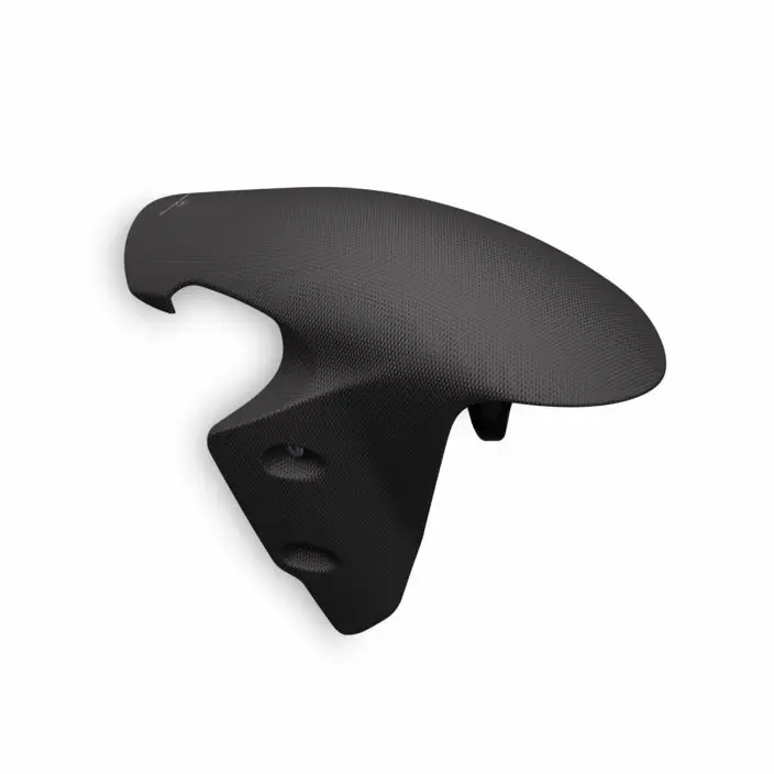 De onmiskenbare stijl van de motorfiets wordt versterkt door dit carbon detail, dat lichtheid toevoegt en de esthetiek van de motorfiets verrijkt dankzij de zorgvuldig bestudeerde geometrie�n. De typische afwerking van carbon voegt ook een opvallende knipoog naar de racefiets toe.