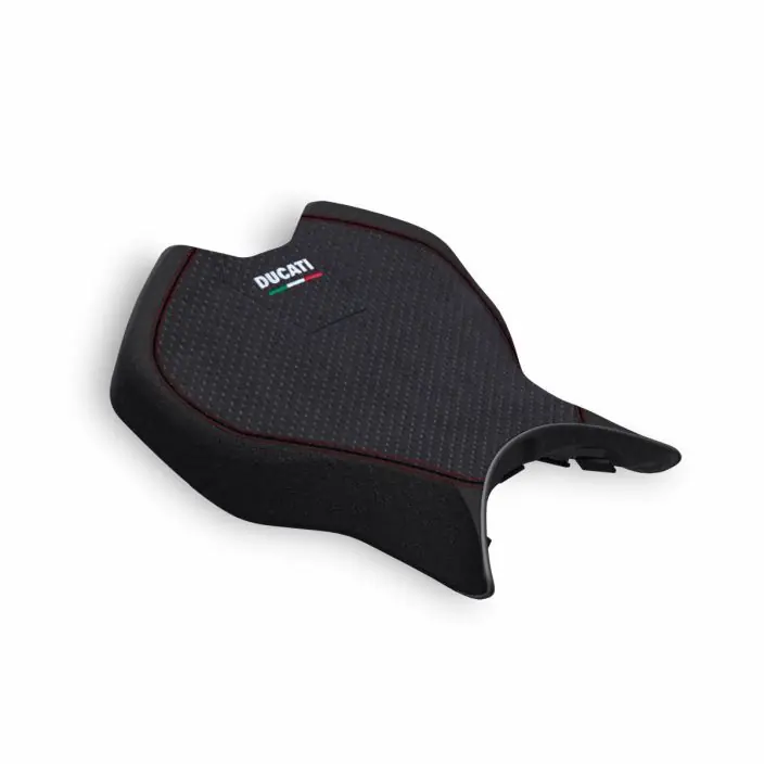 Exclusief accessoire gemaakt van fijn geperforeerd ultrasu�de en versierd met vakkundig stikwerk. De gebruikte materialen en de stevige constructie zorgen voor uitstekend rijcomfort en duurzaamheid. De stickers op het zadel zijn extreem iconisch, voor een uitgesproken sp