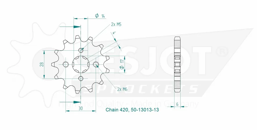 De ESJOT FRONT 13T, 420 is een hoogwaardige sprocket, ontworpen voor optimale prestaties van jouw motor of scooter. Met een tandwielconfiguratie van 13 tanden biedt deze sprocket een uitstekende krachtoverdracht, wat resulteert in een soepelere rijervaring.