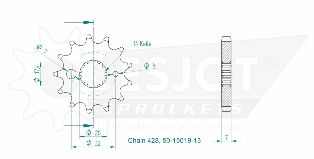 Met de ESJOT FRONT 13T, 428 profiteer je van verbeterde acceleratie en een soepelere rit. Deze sprocket is gemaakt van hoogwaardig materiaal dat slijtvast is, wat zorgt voor een langere levensduur en minder onderhoud.