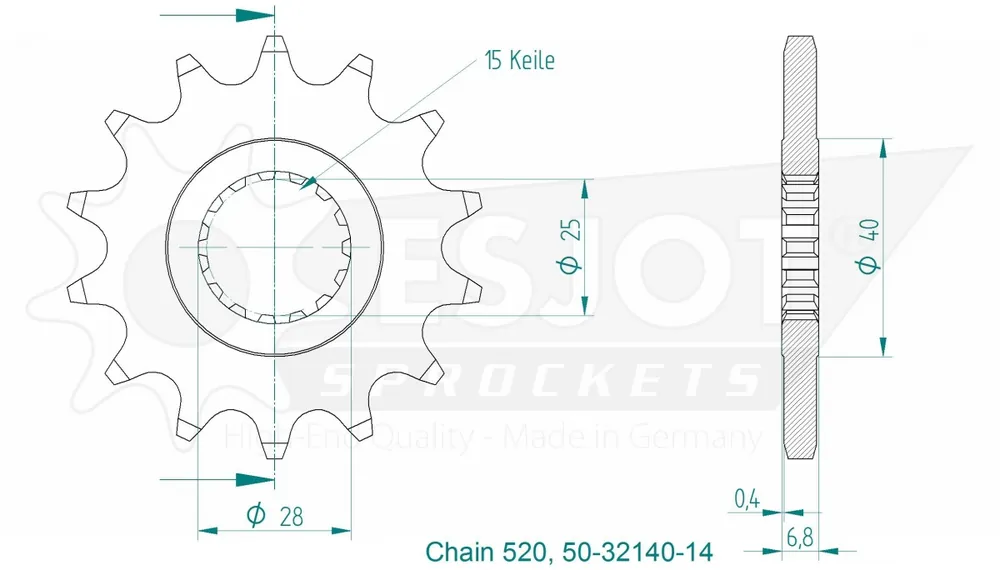 Met de ESJOT FRONT 14T, 520 profiteer je van een verbeterde acceleratie en een soepelere rit. Dit onderdeel is vervaardigd uit hoogwaardig materiaal, wat bijdraagt aan de levensduur en prestaties van je motor. Door de juiste sprocket te kiezen, kun je de rijervaring optimaliseren en de prestaties van je motorfiets naar een hoger niveau tillen.