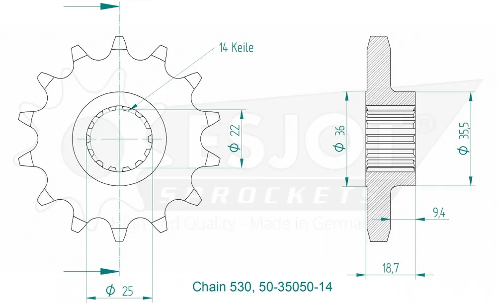 ESJOT – FRONT 14T, 530 – Sprockets – Compatibel met Ducati Voordeelprijs