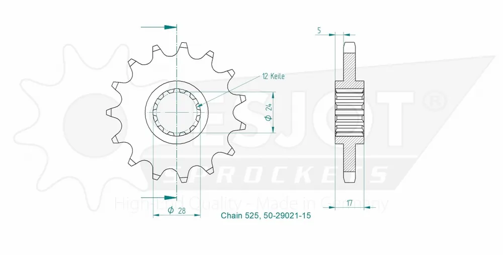 De ESJOT FRONT 15T, 525 sprocket is ontworpen met de hoogste kwaliteitsnormen in gedachten. Dankzij de robuuste constructie en het gebruik van hoogwaardige materialen, garandeert deze sprocket een lange levensduur en uitstekende prestaties. Je kunt erop vertrouwen dat deze sprocket je motor soepel laat rijden en bijdraagt aan een betere acceleratie.