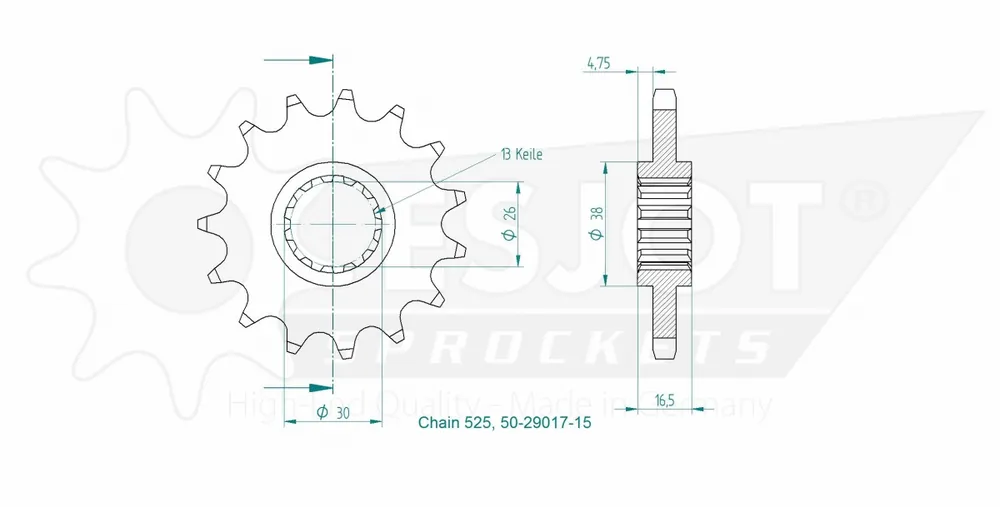 Deze sprocket is vervaardigd uit sterke materialen die zorgen voor een lange levensduur en uitstekende prestaties. Door de specifieke tandverhouding van 15T is het mogelijk om de acceleratie te verbeteren zonder in te boeten op de topsnelheid. Dit maakt de ESJOT FRONT 15T, 525 een ideale keuze voor zowel stadsverkeer als lange ritten.