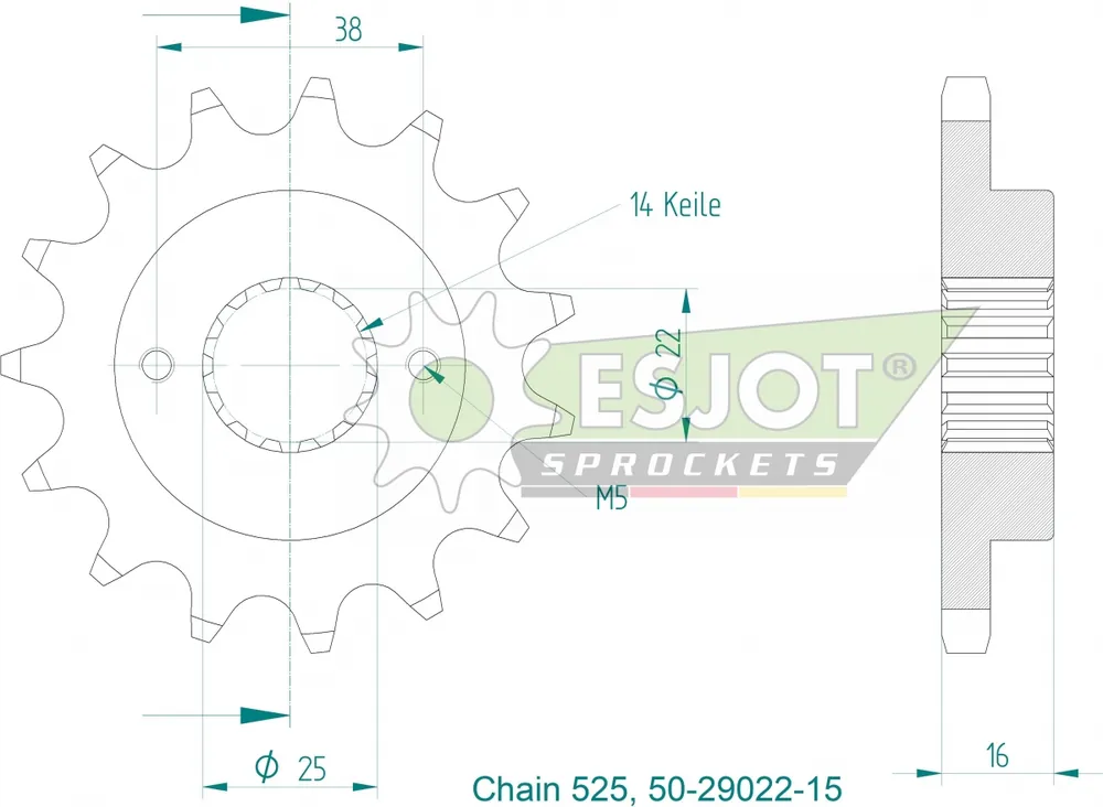 ESJOT – FRONT 15T, 525 – Sprockets – Voor diverse Ducati modellen Gratis Verzending