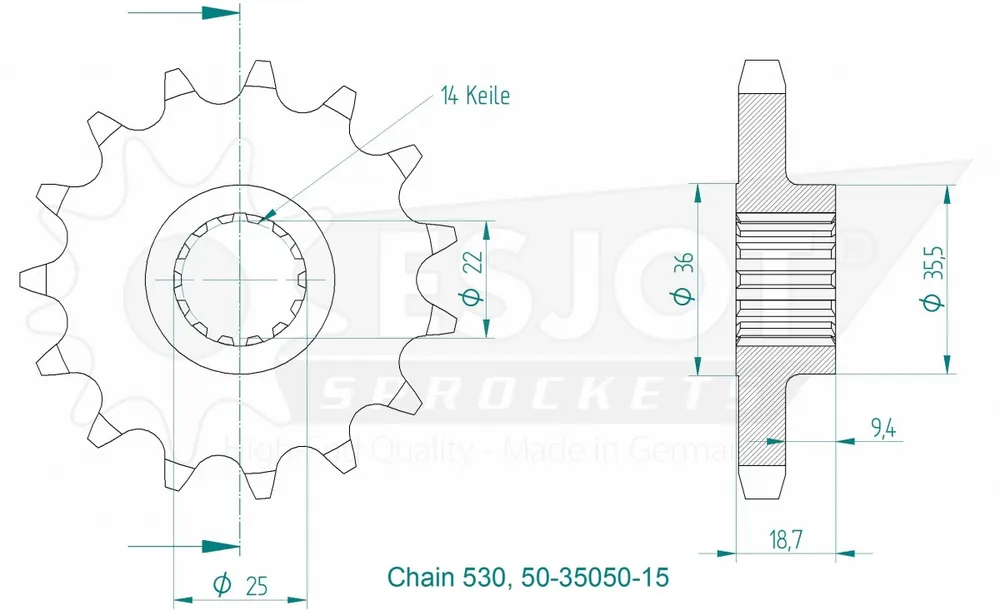 ESJOT – FRONT 15T, 530 – Sprockets – Compatibel met Ducati 1200 en 1260 Wereldwijde Verzending