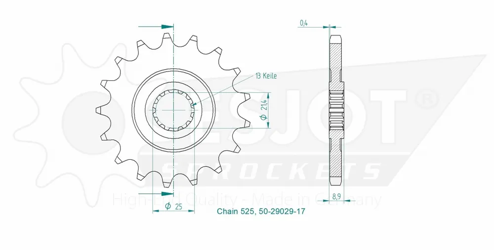 Met de ESJOT FRONT 17T, 525 profiteer je van een uitstekende kwaliteit en duurzaamheid. Het gebruik van hoogwaardige materialen zorgt ervoor dat deze sprocket bestand is tegen slijtage en langdurig meegaat. Hierdoor heb je minder vaak onderhoud nodig, wat je tijd en geld bespaart.
