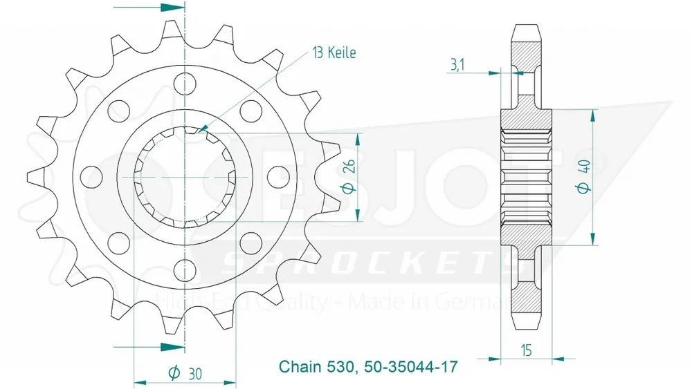 ESJOT – FRONT 17T, 530 – Sprockets – 17T en 530 Express Levering
