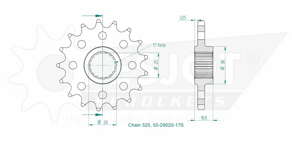 De ESJOT FRONT 17T, LIGHT, 525 is een hoogwaardige sprocket die is ontworpen voor motoren en scooters. Dit product is vervaardigd met een focus op gewicht en prestaties, waardoor het een uitstekende keuze is voor motorrijders die op zoek zijn naar een snellere acceleratie en betere handling.