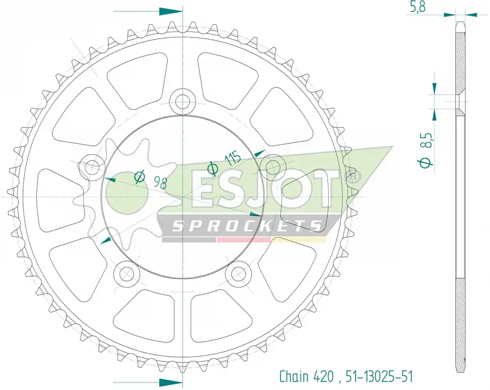 De ESJOT REAR ALU 51T, 420 sprocket is een essentieel onderdeel voor jouw motor of scooter. Met een tandwielverhouding van 51 tanden en een diameter van 420 mm biedt deze sprocket de kracht en precisie die je nodig hebt voor een soepele rit.