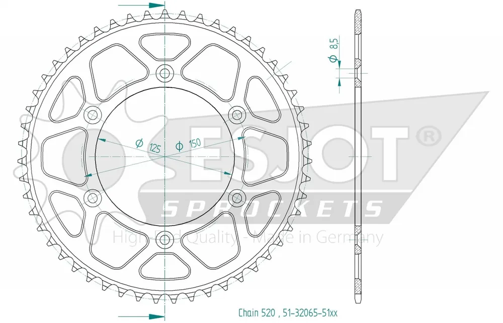 De ESJOT REAR ALU 51T, 520 sprocket is een essentieel onderdeel voor jouw motor of scooter. Dit hoogwaardige achtertandwiel is ontworpen voor een uitstekende pasvorm en optimale prestaties. Dankzij het gebruik van aluminium is deze sprocket lichtgewicht, wat bijdraagt aan een betere acceleratie en handling van je voertuig.