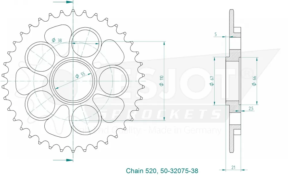 ESJOT – REAR STEEL 38T, 520 – Sprockets – Geschikt voor Ducati Korting