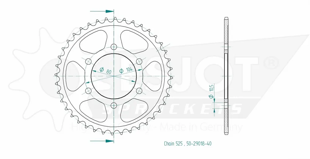 De ESJOT REAR STEEL 40T, 525 is veelzijdig en kan in een breed scala aan motoren en scooters worden gebruikt, zolang de compatibiliteit met de 525 ketting is gewaarborgd.