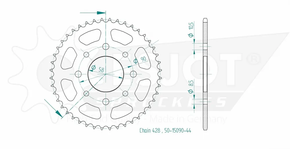 De REAR STEEL 44T, 428 sprocket is vervaardigd uit hoogwaardig staal, wat bijdraagt aan de lange levensduur en weerstand tegen slijtage. Dit materiaal zorgt ervoor dat de sprocket bestand is tegen de zware omstandigheden die je tijdens het rijden kunt tegenkomen. Door de duurzame constructie hoef je je geen zorgen te maken over snelle slijtage, waardoor je meer tijd op de weg kunt doorbrengen.