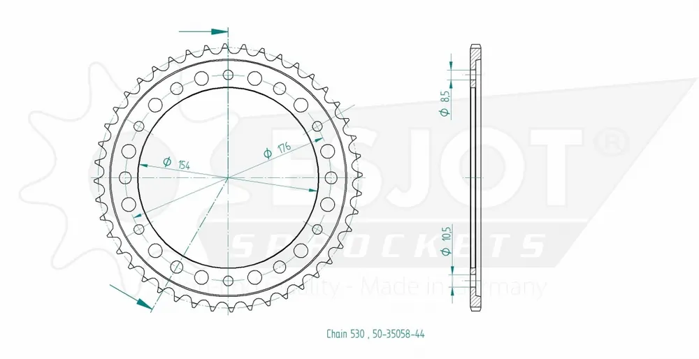 ESJOT – REAR STEEL 44T, 530 – Sprockets – Geschikt voor Honda Modern