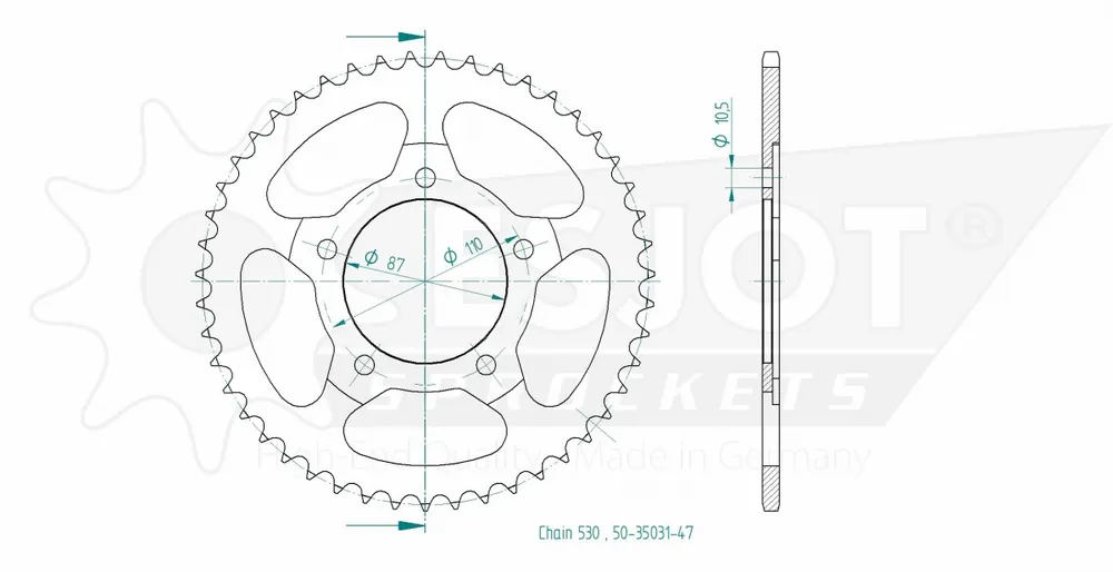 ESJOT – REAR STEEL 47T, 530 – Sprockets – Hoogwaardige kwaliteit Gratis Verzending