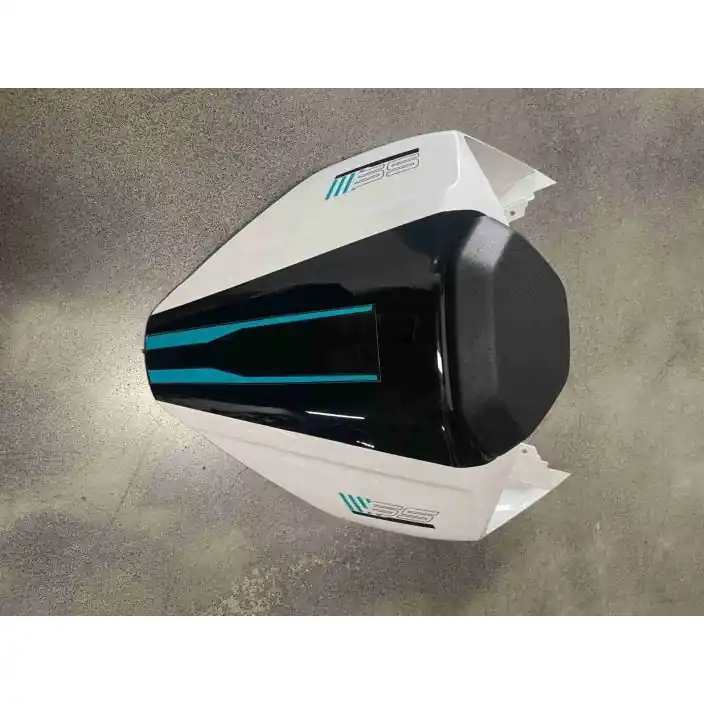 Zadelkap in Race Look – Nebula White & Nebula BlackGeef je motor een sportieve, race-geori�nteerde uitstraling met deze originele achterzadelkap. Dit accessoire vervangt het passagierszadel en cre�ert een strakke, aerodynamische look, ge�nspireerd op het racecircuit.De kap is uitgevoerd in een opvallende Nebula White met een centraal gedeelte in Nebula Black, geaccentueerd met sportieve blauwe en zwarte strepen. De strakke lijnen en glanzende afwerking passen perfect bij het dynamische design van je motor. Eenvoudig te installeren, klik je de kap eenvoudig vast op de plek van het passagierszadel, waardoor de motor in een handomdraai een 1-persoons raceconfiguratie krijgt.