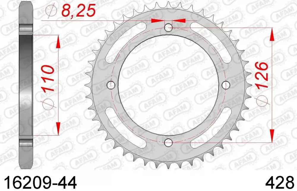 De AFAM REAR STEEL 44T, 428 is geschikt voor motoren met een 428 ketting. Controleer altijd je huidige sprocket en kettingmaat om de compatibiliteit te bevestigen.