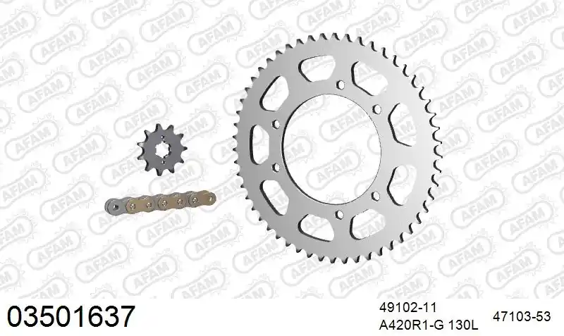 Fabrieksprijs AFAM – 420R1 130 AR (CLIP) GOLD & SPROCKETS – Chain Kits – STEEL